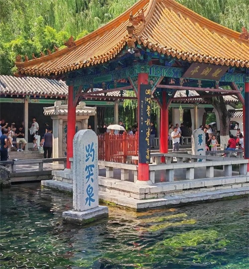 趵突泉公园位于济南市中心的繁华地段,南倚千佛山,北靠大明湖景区,东与泉城广场相连。这个公园是以泉水为主题的特色园林,被誉为"天下第一泉",其中的趵突泉是济南"七十二名泉"之首,拥有2000多年的历史。这个泉多次出现在文学作品中,其中最具代表性的是老舍的《趵突泉》。游客来到这里,都是为了亲眼见证趵突泉三股泉水的喷涌奇景。