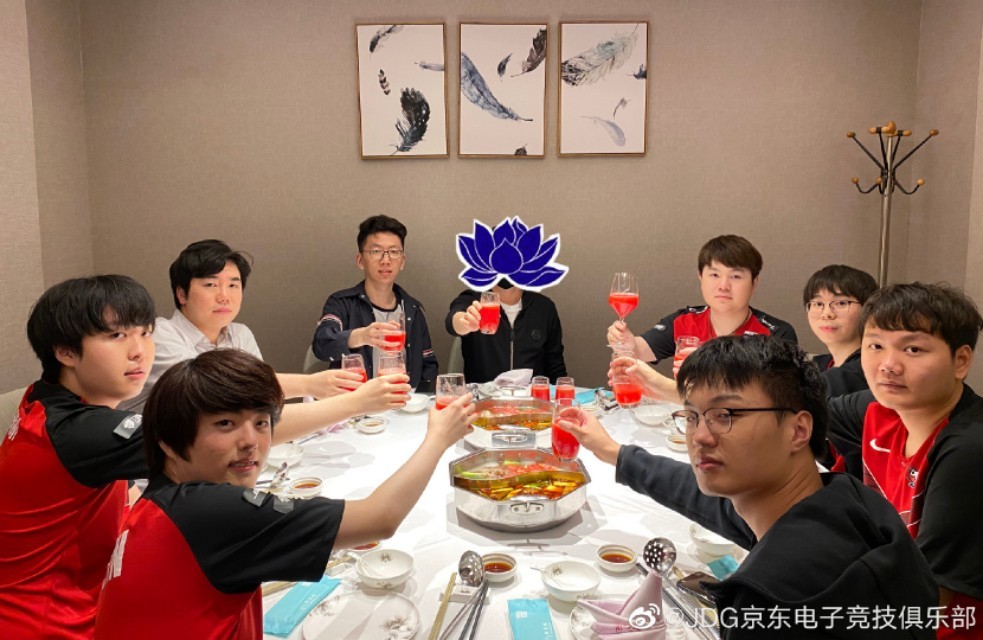 JDG赛后晚宴曝光,“只有Zoom使用高脚杯,蓝莲花为下等马道歉”