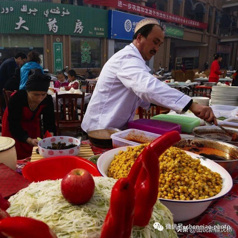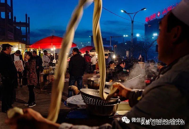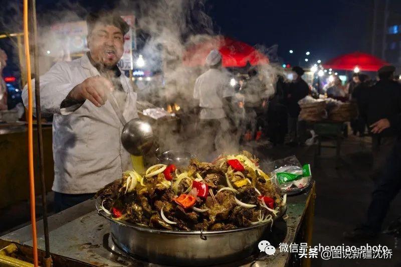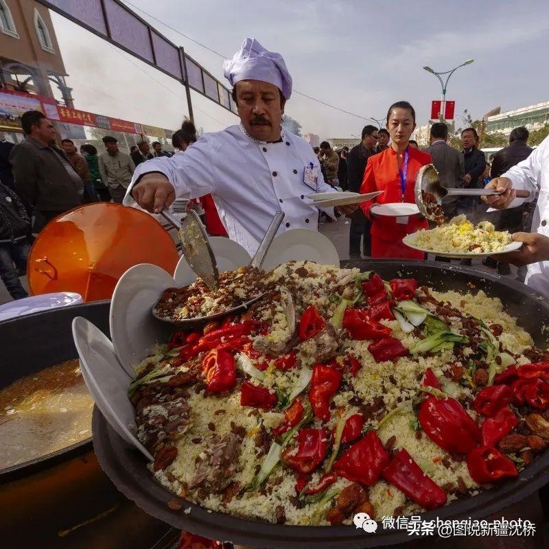 夜市巴扎上的大锅抓饭色彩够诱人。