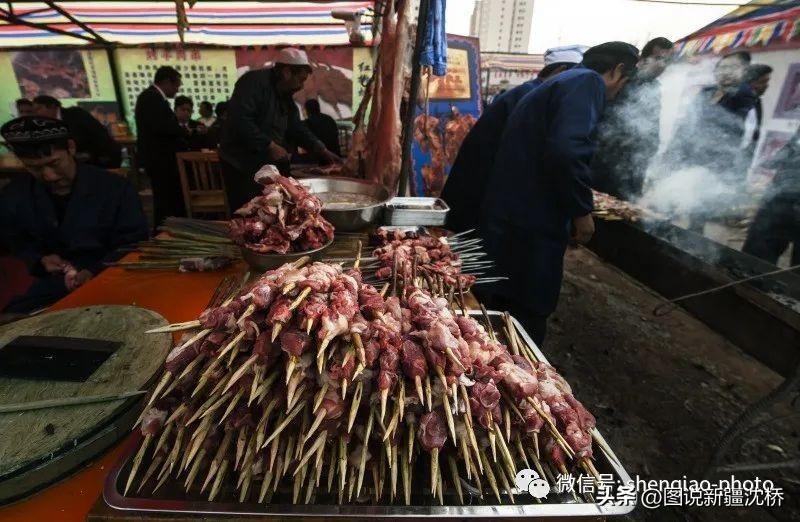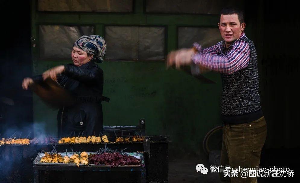 肉孜·达吾提的烤肉摊前烤羊排、烤羊肉丸子、烤羊肝、烤羊腰等都在他家的烤肉槽子上。