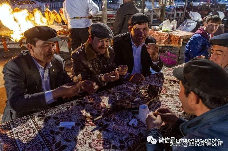 在南疆,夏日的白昼特别长,10点多暮色才慢慢降临,巴楚夜市巴扎也在暮色和烟火中更加红火。来来往往的人们带着对巴楚美味的向往而来,在烟熏火燎中满足了味蕾的渴望后走了;巴楚县夜市巴扎在食客们你来我往中呈现出少有的快乐和热闹。正如诗人杨牧曾描述新疆的夜市:膻香伴着微微的尘土,弥漫了夏夜不眠的营生,炉火宛如远古的篝火,隐现在这遥远的边城,这是一个充满了烟火气的地方,有着人间一切的快乐和热闹,烟火昼夜飘香。