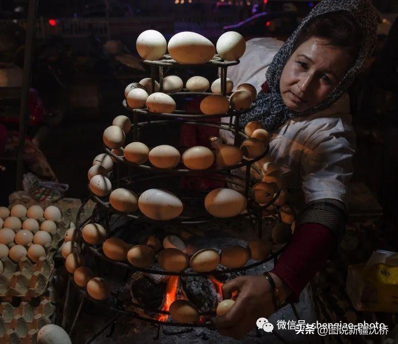 巴楚夜市巴扎上的鸭蛋、鸡蛋也是烤着吃。