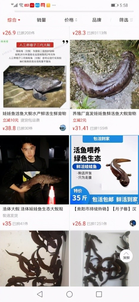 记者在这个平台上看到,售卖娃娃鱼的商家有几百家之多,均称是“养殖场直销”,可“现抓现发、包活到家”,而且,大部分娃娃鱼的售价是30多元一斤,从几斤到十几斤一条的都有卖。