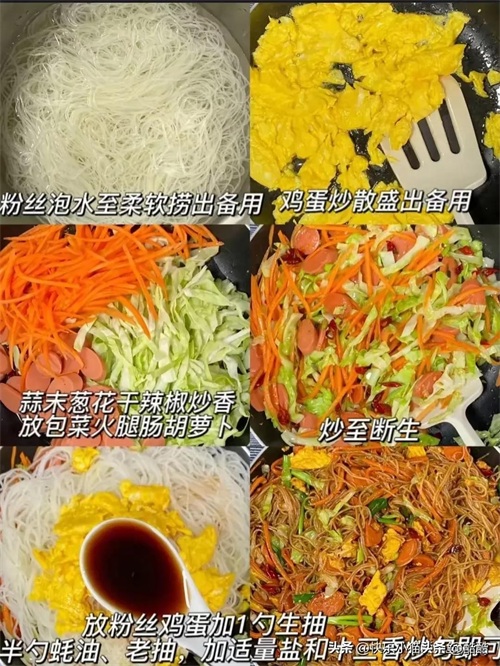 1️⃣火腿鸡蛋素炒米粉:鸡蛋的嫩滑、火腿的咸香与米粉完美交织,简单快手又美味。