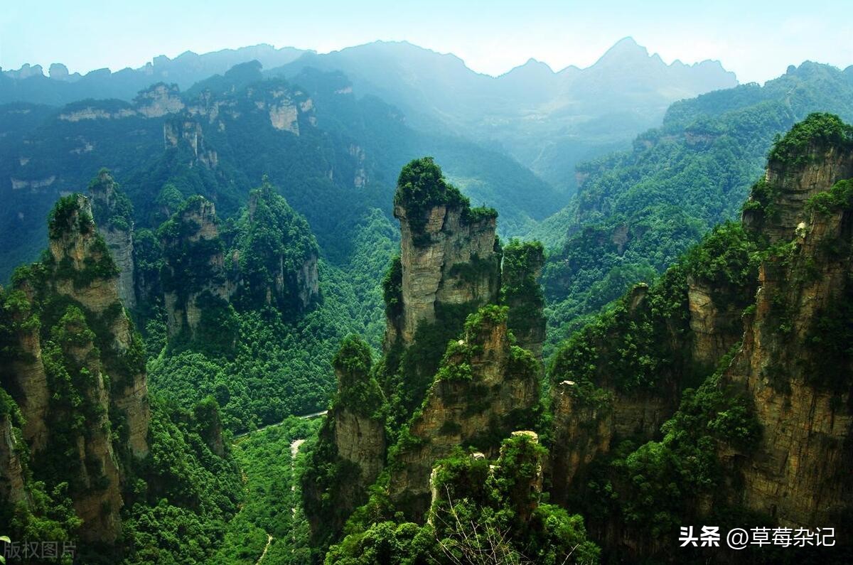 5、张家界:张家界是中国著名的山水风景名胜区,以峰林奇秀、溪谷幽深、山泉清冽、云海缥缈的景色著称。张家界的国家森林公园、天门山等景点都令人流连忘返。