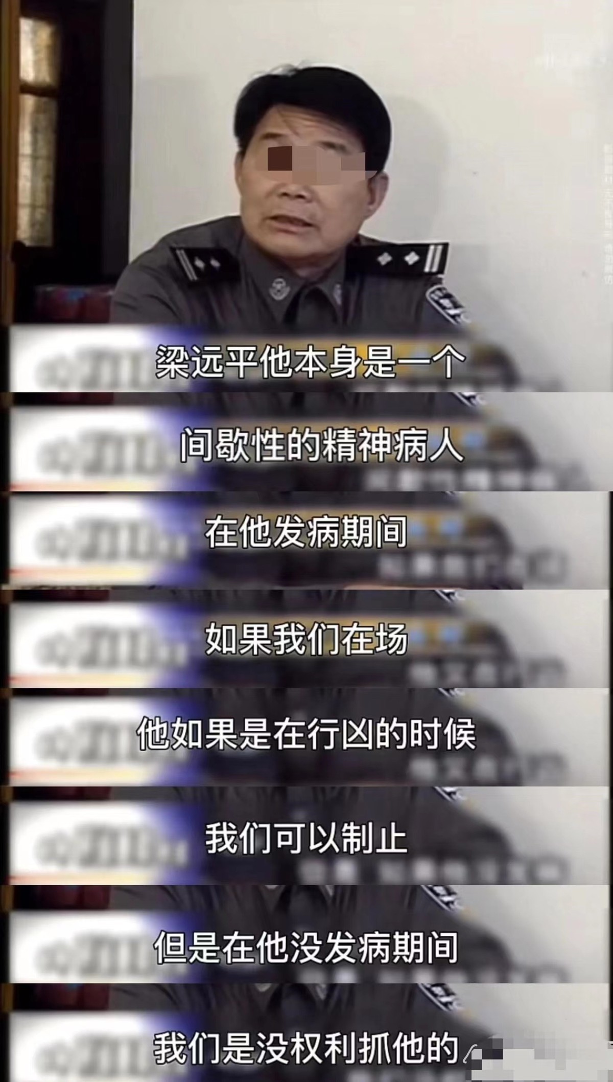 患病后的梁远平成天身上就带着把刀,谁要是与他有争执他提着刀就上去追着人家砍,不少村民也因此受了伤。但由于他是精神病的原因,警察也拿他没办法。