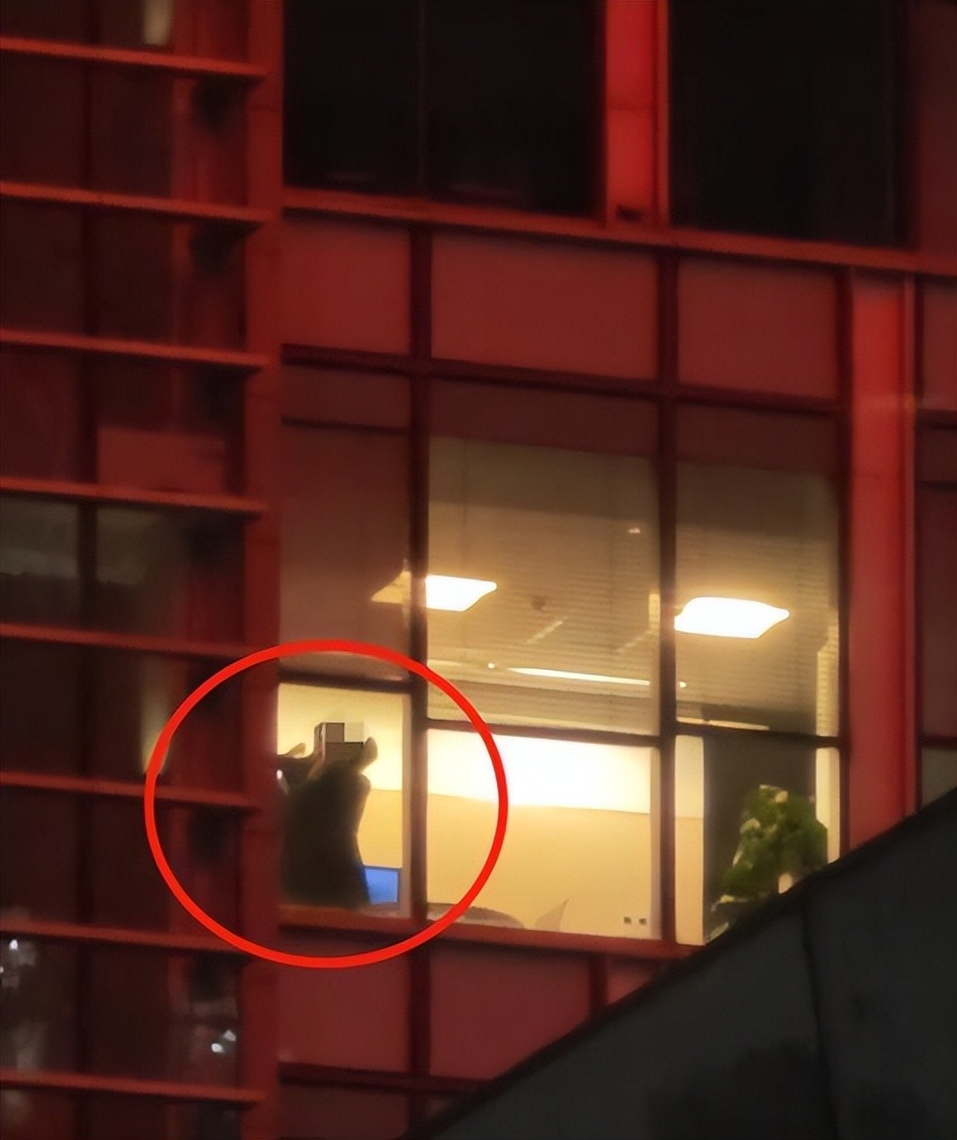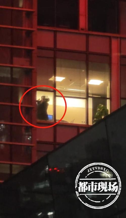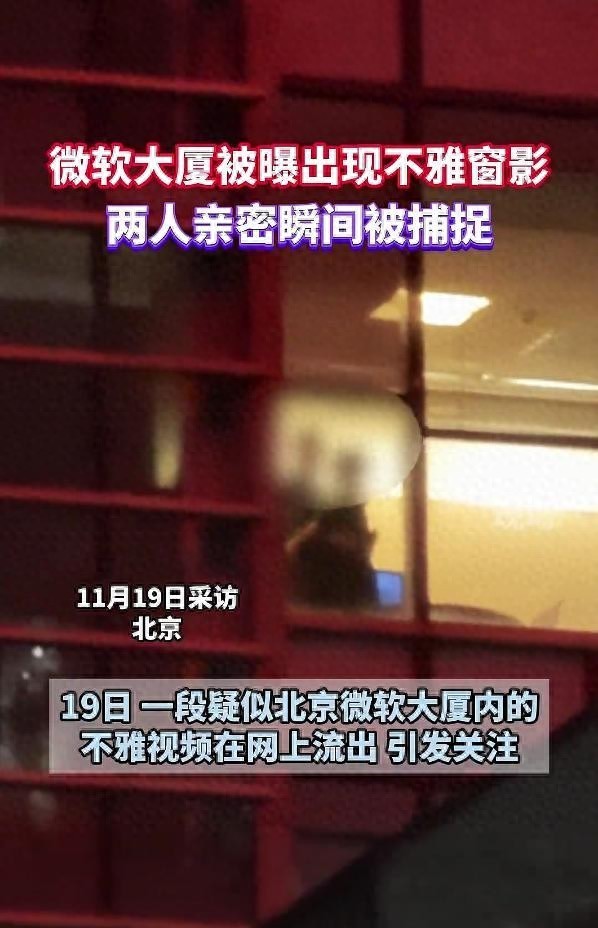 疑似北京微软大厦内不雅视频流出,一对年轻男女在办公室窗口热吻