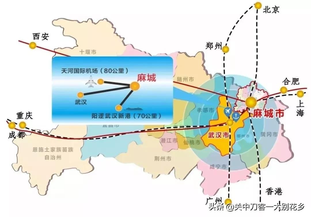麻城位于武汉、郑州、合肥三个省会城市的地理中心,长江的中游,是京九经济带和沪蓉经济带上的重要节点,是国家规划的大别山片区和武汉城市圈的区域性中心城市、综合交通枢纽。
