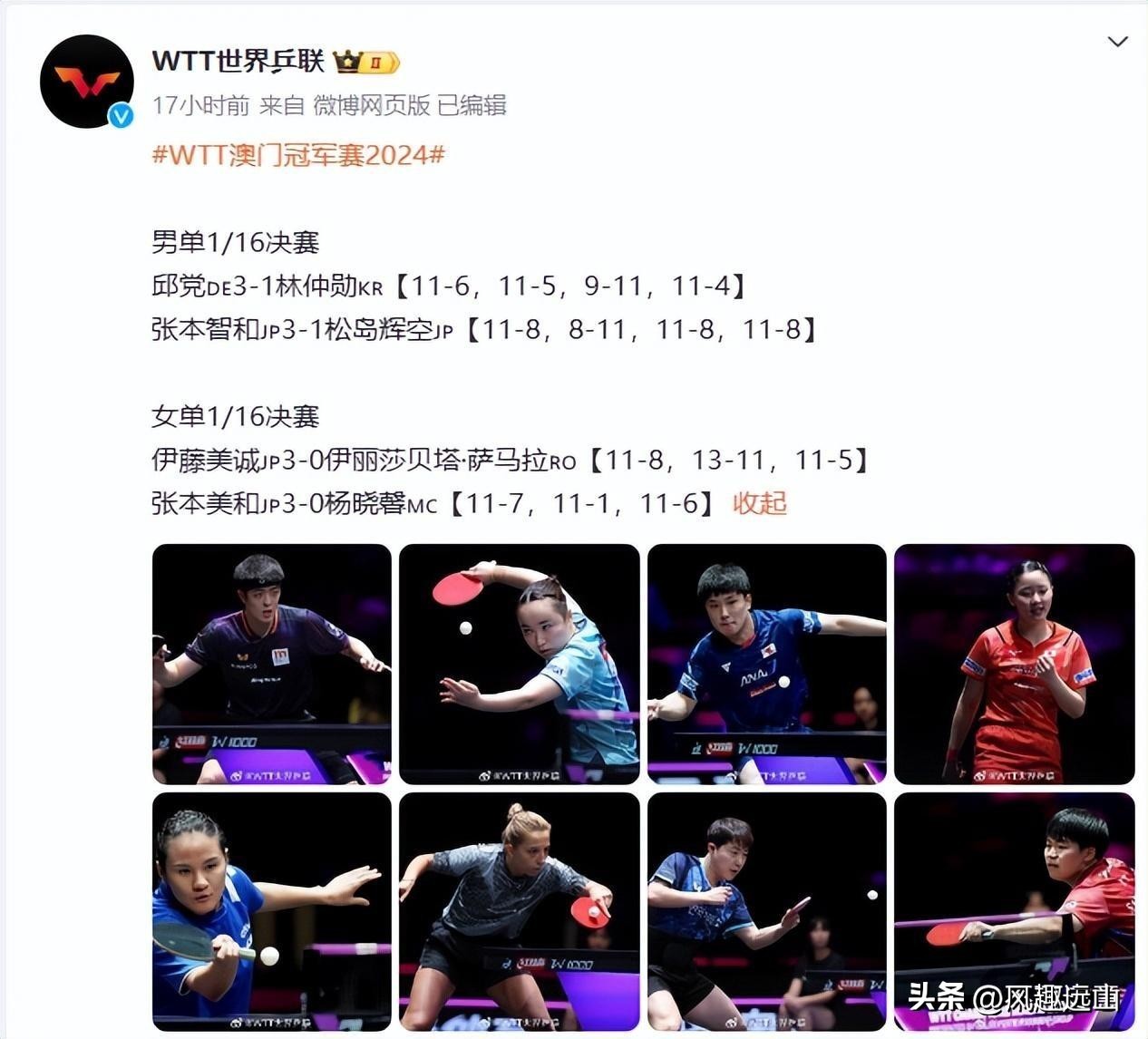 让我们一起关注WTT澳门冠军赛,为中国队加油,期待他们能够再创佳绩续写中国乒乓球的辉煌!