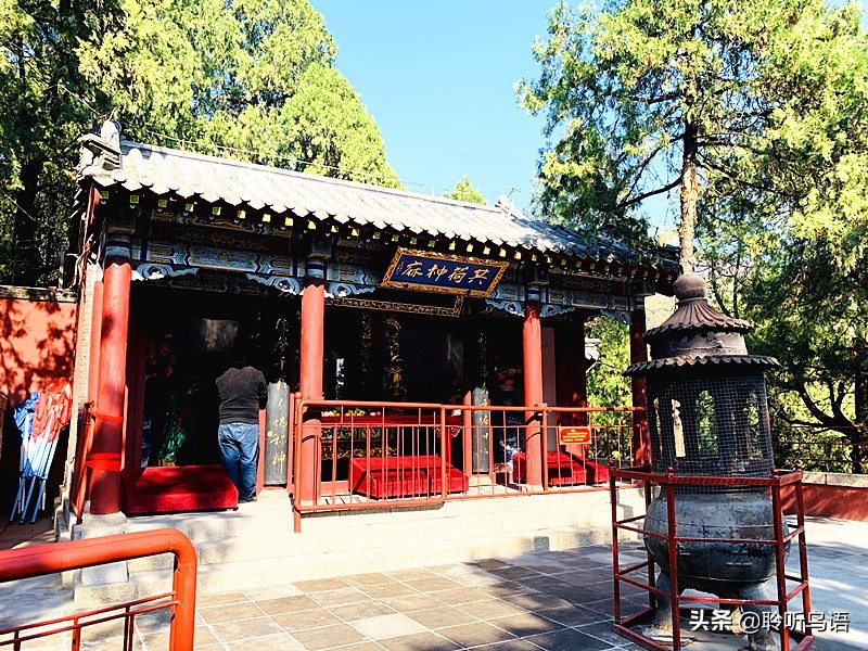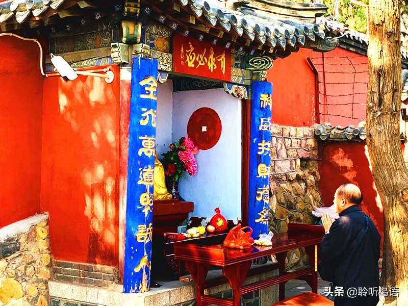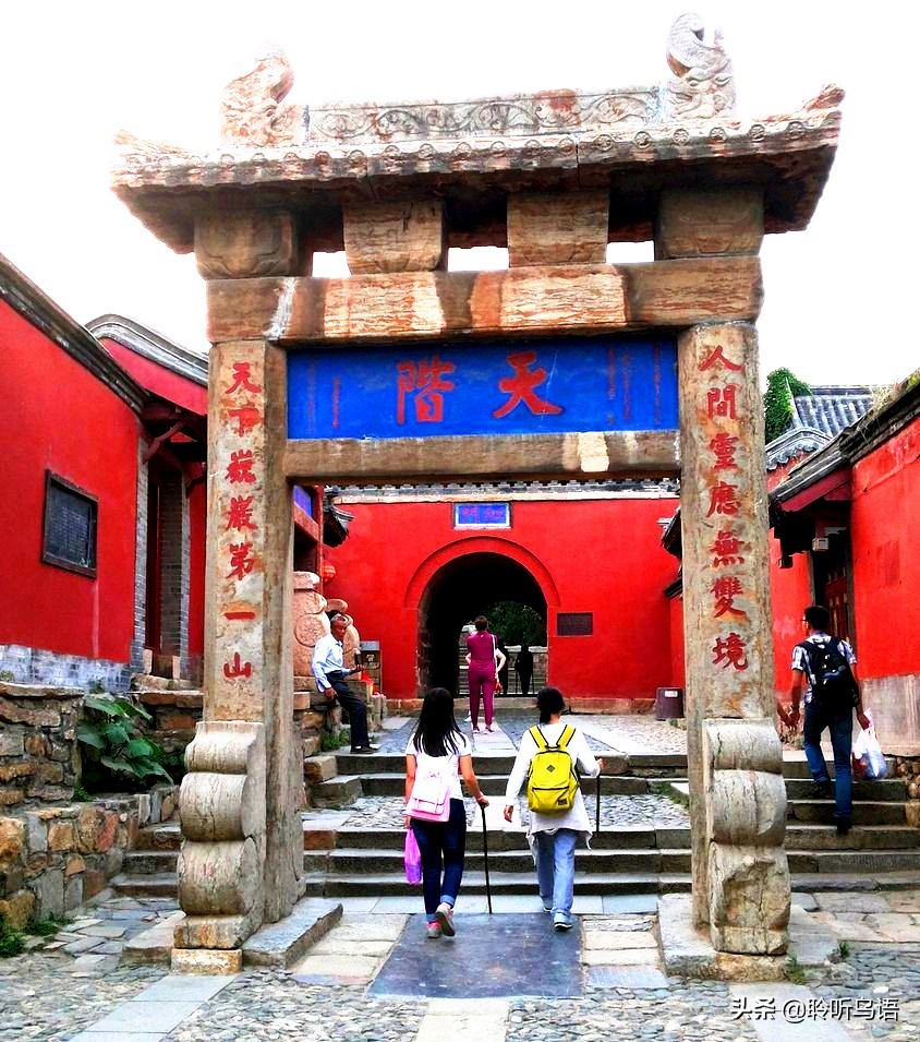 在飞云阁的东边,就是体现泰山佛教文化的红门宫东院,正殿供奉着弥勒佛,对面殿内供奉着九莲菩萨。