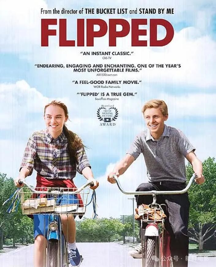 《怦然心动》(Flipped)是一部2010年上映的美国浪漫剧情片,由罗伯·莱纳执导,改编自温迪·麦斯瑟的同名小说。影片以1957年的美国为背景,讲述了两个相邻家庭的孩子——布莱斯和朱丽的成长故事。
