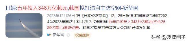 【2】新华网——《日媒:五年投入348万亿韩元,韩国拟打造自主防空网》2023.12.26。