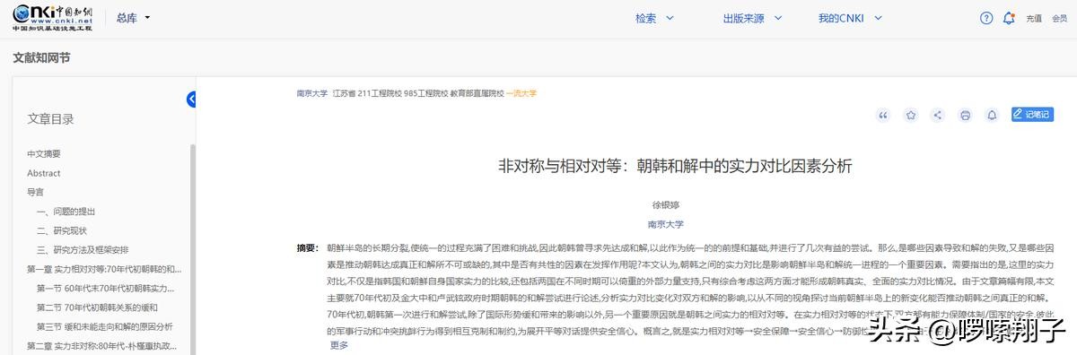 【5】中国知网——《非对称与相对对等:朝韩和解中的实力对比因素分析》。