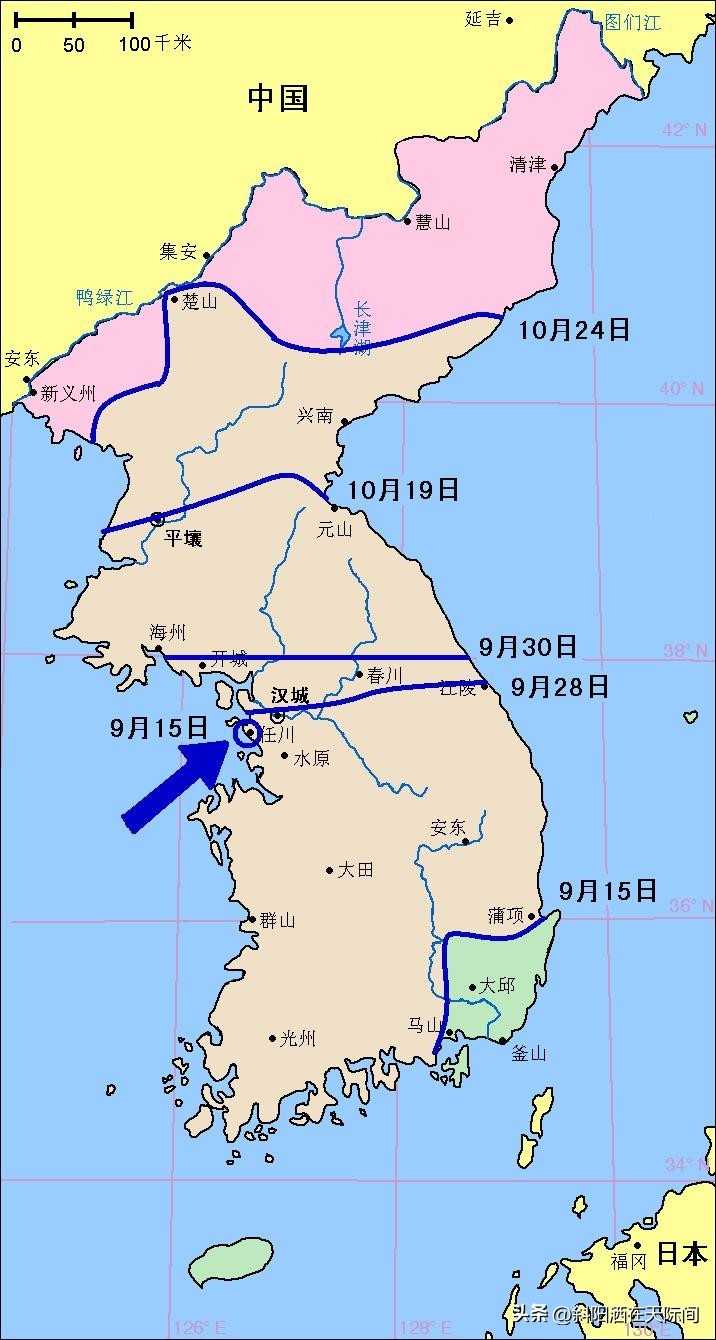 在1950年9月上半月,朝鲜军的前线兵力尽管已经不足,却依然保持着攻势。联合国军则坚守着釜山防御圈,防御着仅剩的东南一隅约一成国土。从地面战的战局来看,联合国军的东、南两面是汪洋大海,西、北两面则是北韩军队,已经陷入了被包围的战略绝地。然而,如果转换视角就会发现,事实上朝鲜本身才是被包围的一方。