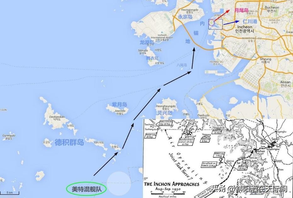 1950年9月15日早上,来自美国、英国、荷兰、加拿大、澳大利亚、新西兰等国的各类舰艇230艘云集在朝鲜半岛西海岸港口仁川附近的海域,其中仅航空母舰就有6艘之多。而这些航母上停放的飞机加上前来支援的美国远东空军飞机,总数更是达到了惊人的1500架之多,足以遮蔽仁川的天空。