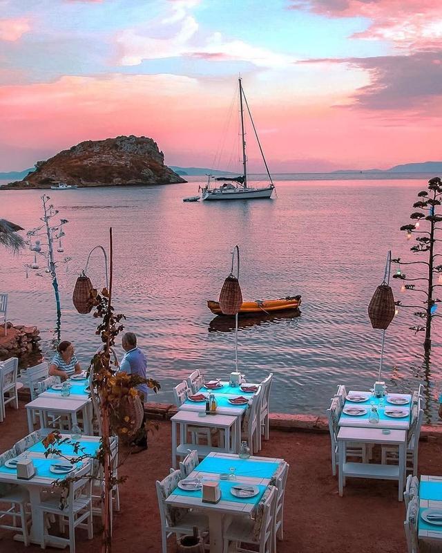 在这里,串烧美味多汁,带馅料的葡萄叶包着香喷喷的米饭和开胃菜,用的是当季最好的原料、当天制作的新鲜调味汁。刚刚捕捞的鱼由一双双熟练的巧手在煤气炉上烹熟,不加任何点缀,搭配新鲜的田园沙拉和土耳尔著名的茴香饮品,还有恰伊茶,配上甜蜜的果仁蜜饼,真是美味到极点。