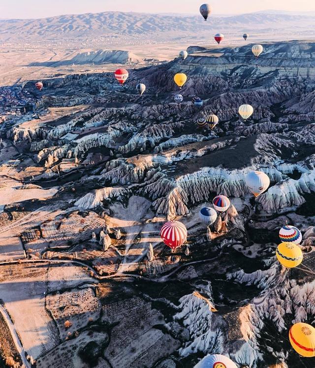卡帕多西亚以其童话般的斑点岩层而闻名:奇特的岩石构造、岩洞和半隐居人群的历史遗迹令人神往,热气球漂浮在“如同月球”的地表上,洞穴酒店,都是土耳其独一无二的风景。这里被美国《国家地理》杂志社评选为十大地球美景之一。是地球上最适合乘热气球的三个地方之一。
