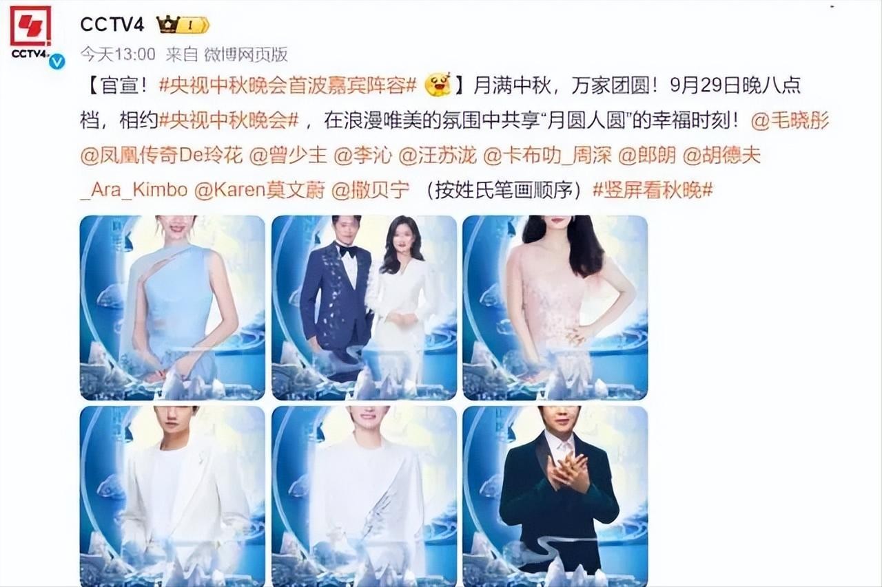 央视重拳出击,官宣中秋晚会嘉宾名单,阵容盛大收视率稳了!