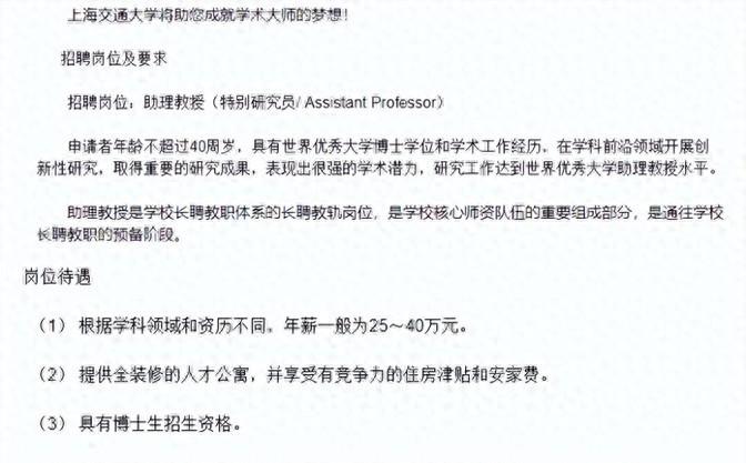 所以,问题来了——如果你是一个理想主义者,渴望在学术领域有所建树,上海交大的助理教授岗位无疑是一个值得尝试的机会。高薪、好福利,平台广阔,但同样,科研压力也不容小觑。你想过了吗?当你站在这片学术高地上,面对那些不知疲倦的挑战和压力,你能笑得出来吗?