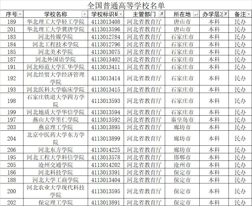 (13) 民办大学&独立学院(21所):在本科院校里,河北的民办大学有21所,包含独立学院,其中有9家都在石家庄市。而独立学院基本上是由普通本科学校和社会民间资本合办。所以独立学院的冠名基本都有母校的名字,但它拥有独立的学校编码和招生,和冠名之中的母校有本质区别。这些民办本科大学和独立学院都是河北省教育厅管辖。