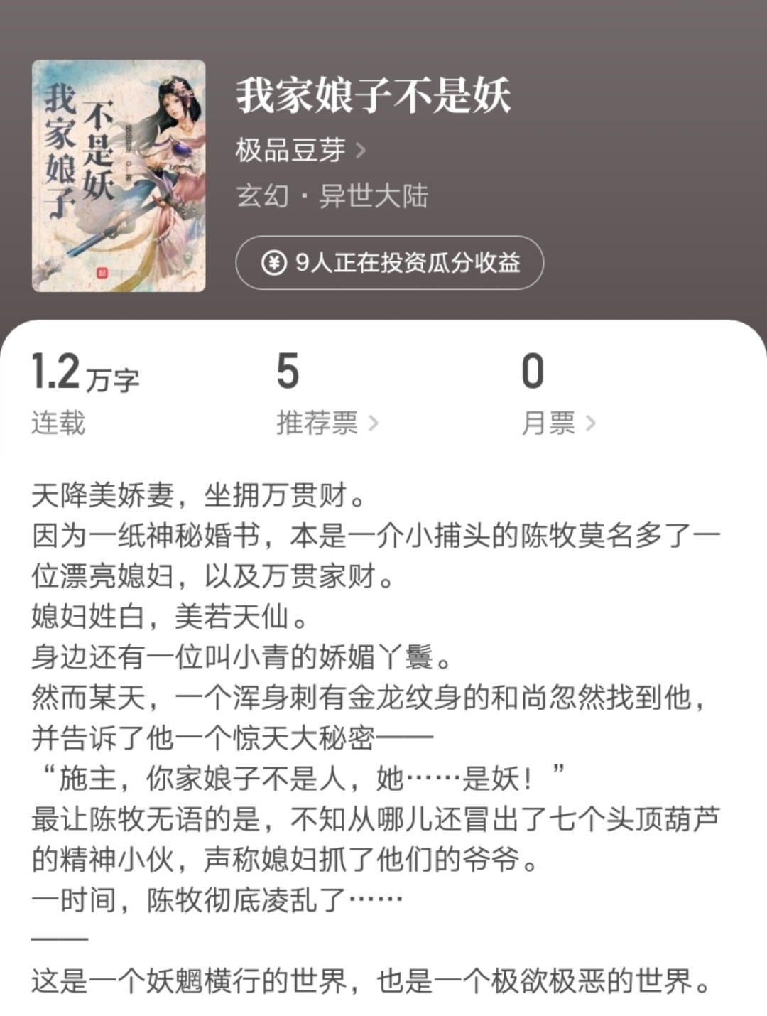 目前则是在连载小说《白首妖师》,至于这本悬疑类的新书,是他双开用来调节的兴趣之作,其说过不保证后续写到什么程度。