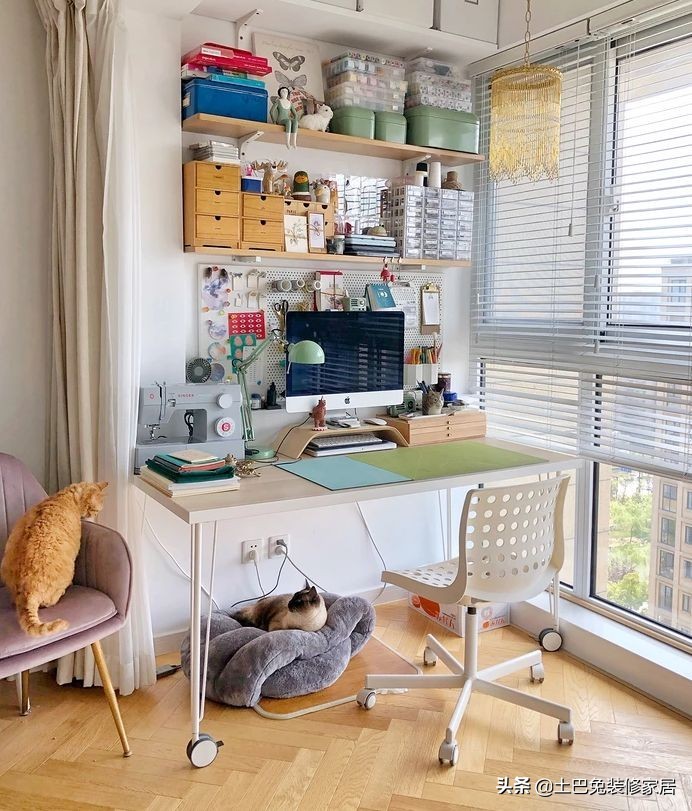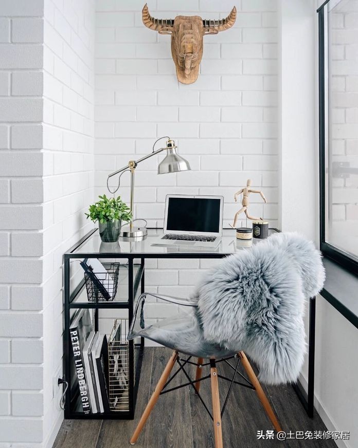 如果你喜欢在光线充足的地方看书、工作,那就可以在阳台设计一个小书房,精心布置一个书桌,工作心情瞬间美美哒。