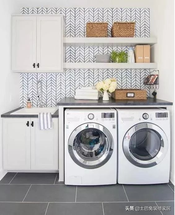 一台洗衣机的宽度大概60厘米,洗手台大约50厘米,如果你们家阳台的宽度有120厘米的话,就能装下美美的洗衣机和洗手台啦。