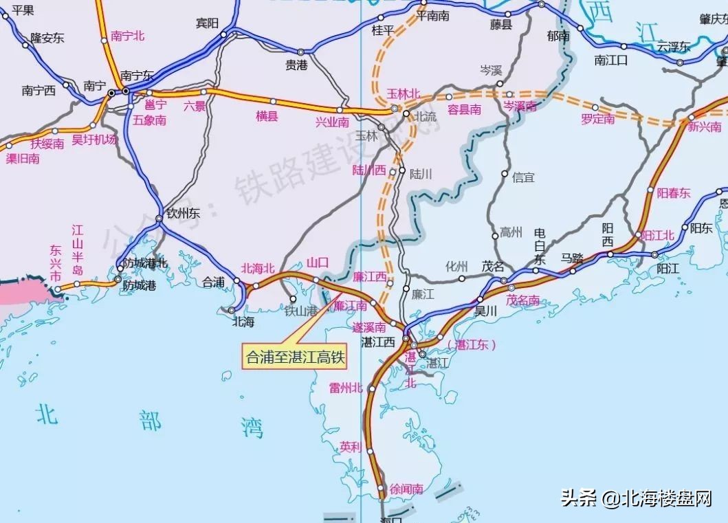 2、2018年5月21日,广东省发改委回复经两省区协商合浦至湛江铁路建设标准,拟调整为时速350公里客运专线。