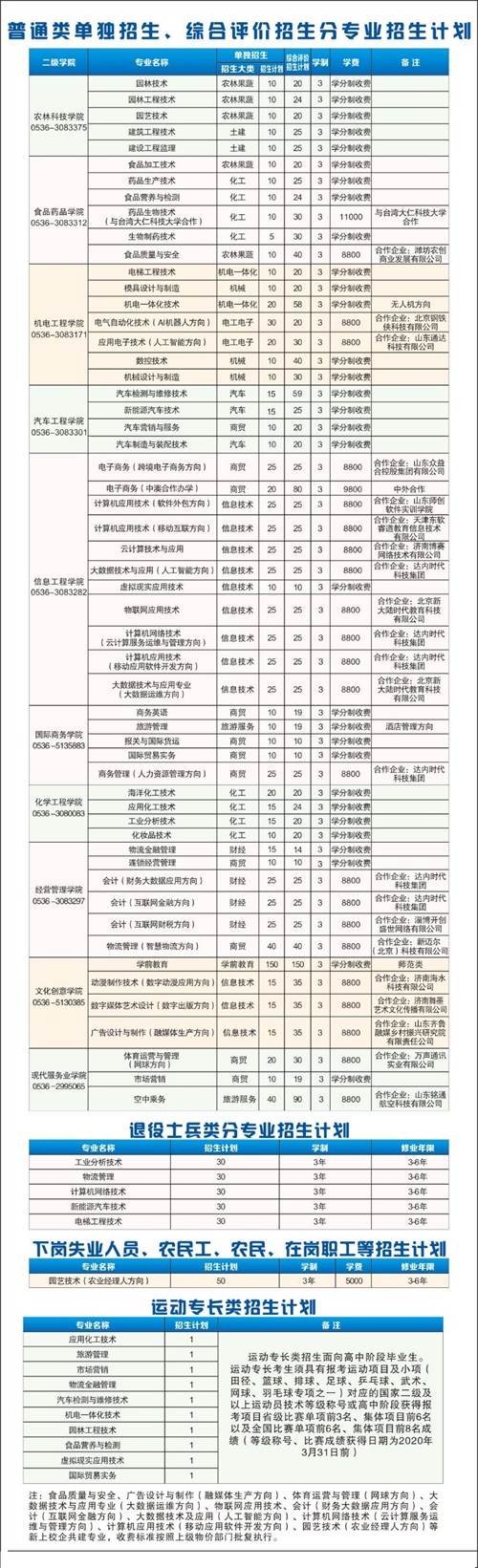 2020年普通类单独招生、综合评价招生分专业招生计划表