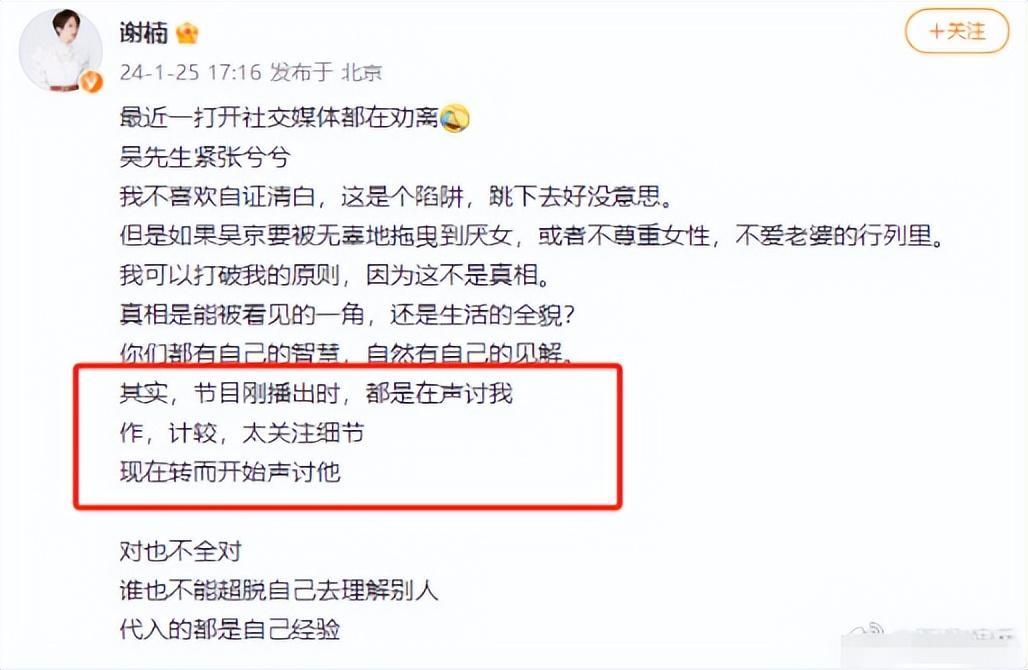 这就导致了网友觉得:谢楠在小心翼翼地“捧”着吴京。