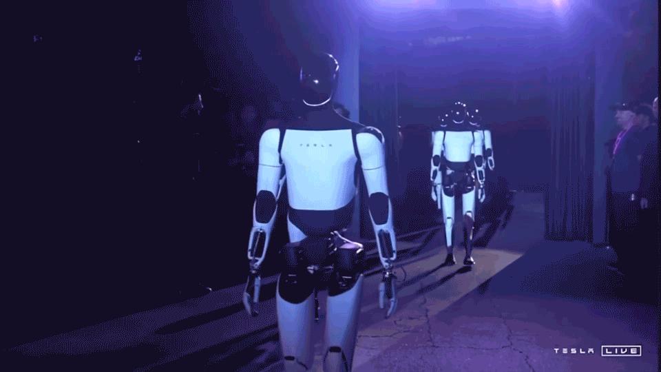 特斯拉的机器人 Optimus 同样没有缺席,相比于之前笨拙的动态展示,这次直接在会场承担起舞者、服务员等角色,为马斯克描绘的未来世界佐证。