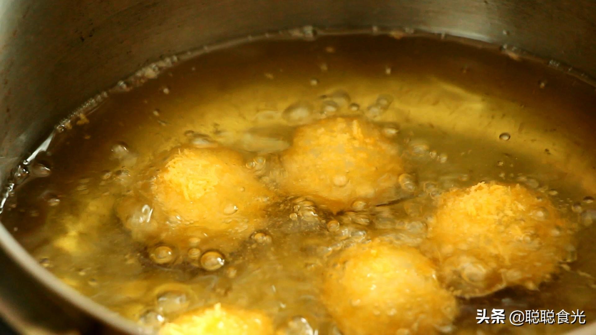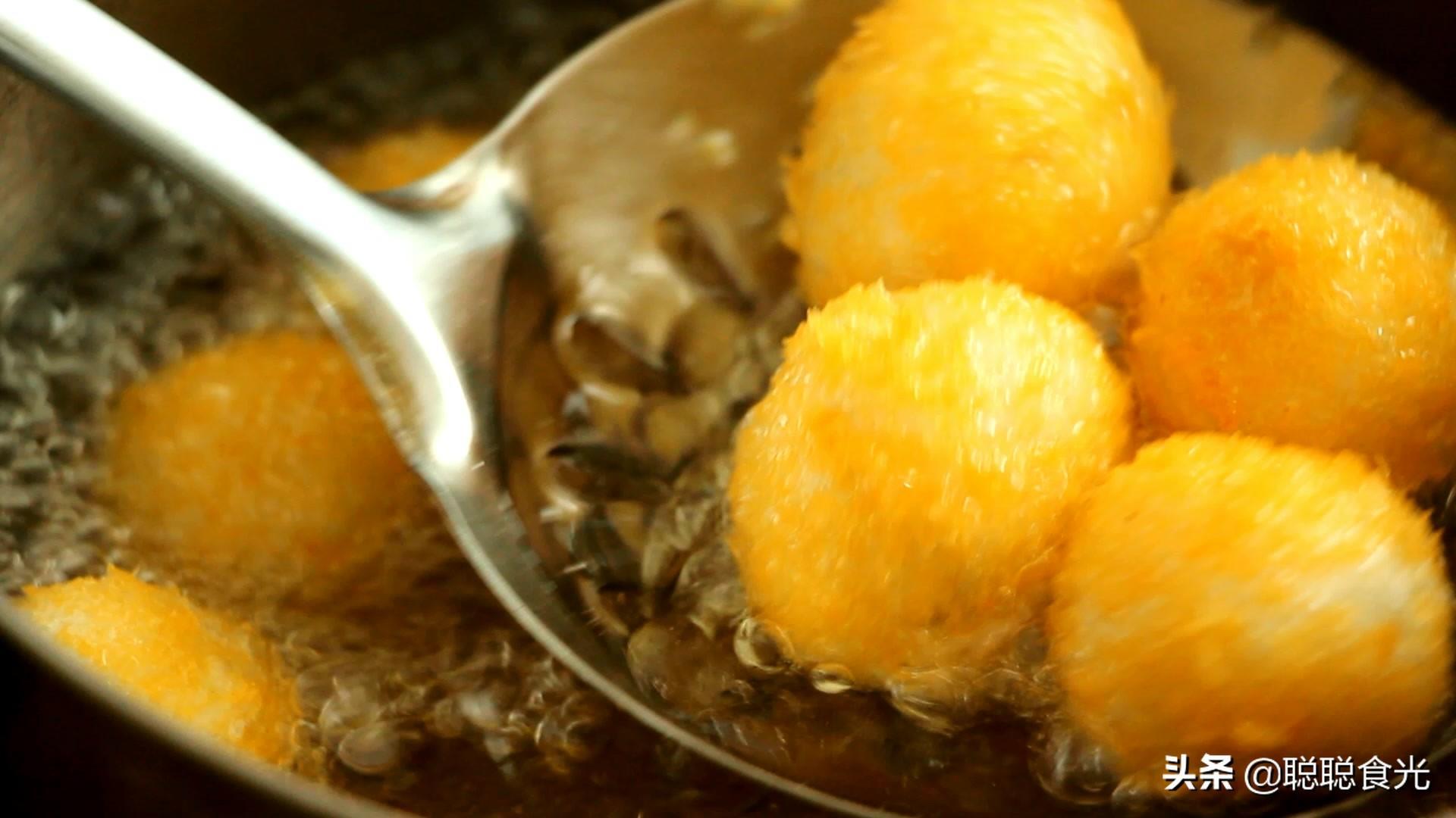 第六步:炸到元宵表面颜色变深就可以捞出来了,一定要控制好油温,否则很容易炸糊。