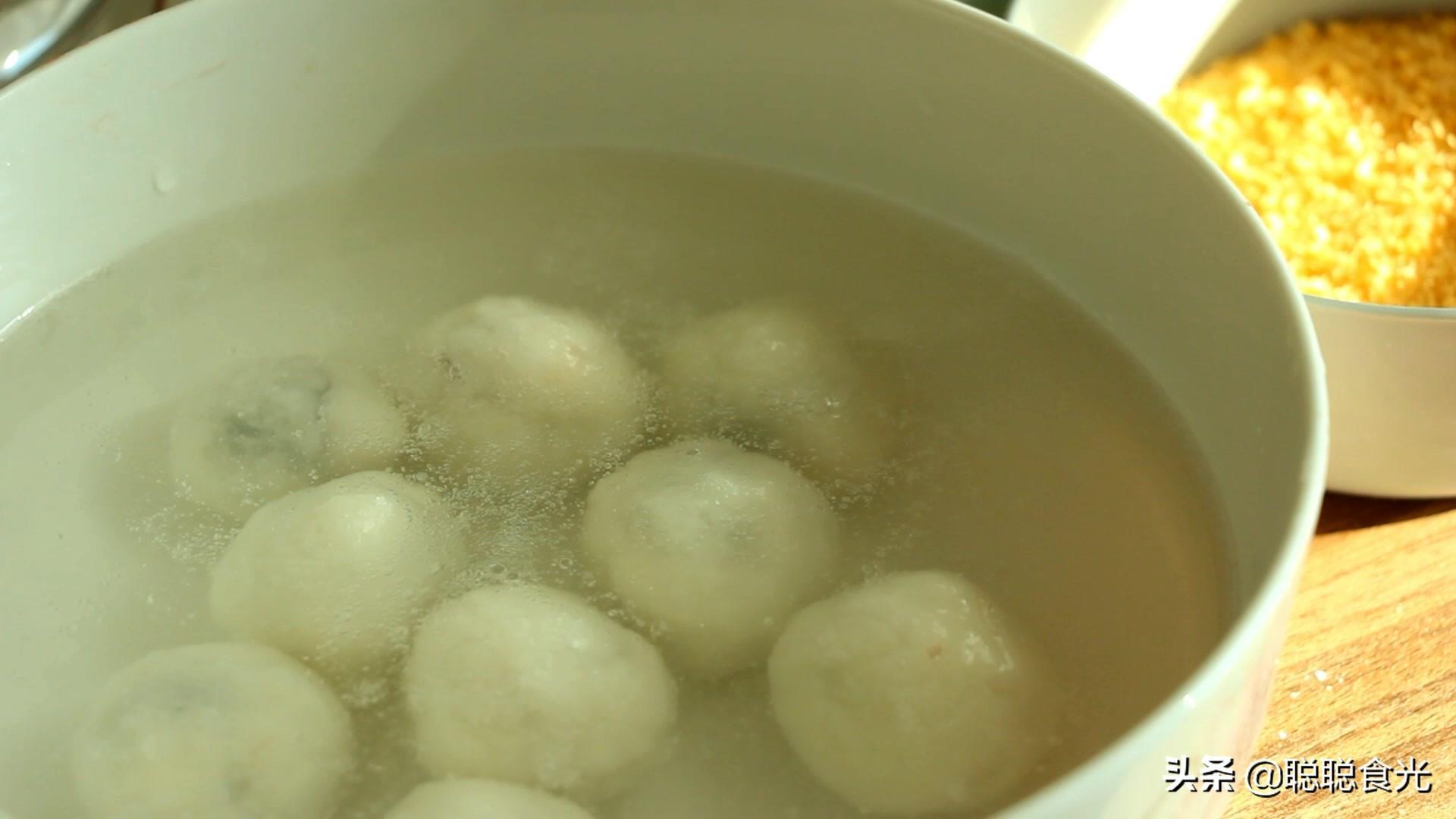 【操作步骤】第一步:准备好元宵或者汤圆,我用的是自己滚的元宵,也可以用速冻的汤圆来做。