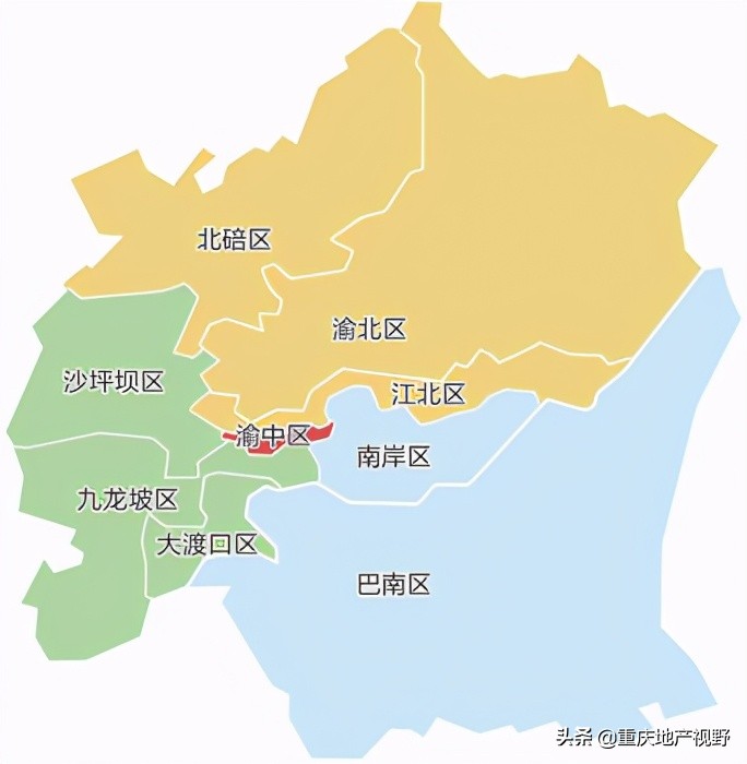 比如我们知道重庆的主城9区,包括渝中区,江北区,渝北区,南岸区,九龙坡区,沙坪坝区,大渡口区,巴南区,北碚区。