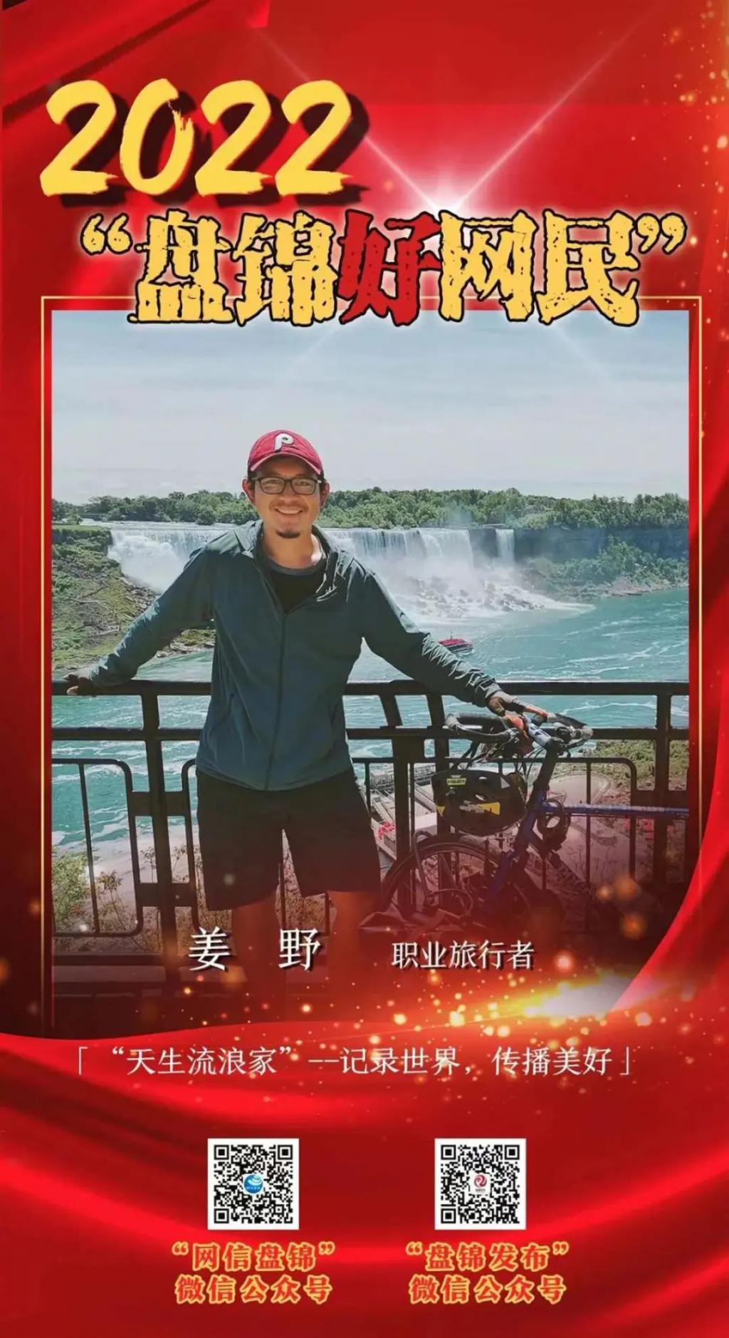 在骑行过世界各地后,姜野选择回到家乡创业,为辽宁盘锦做宣传,还荣获 " 盘锦好网民 " 的称号。