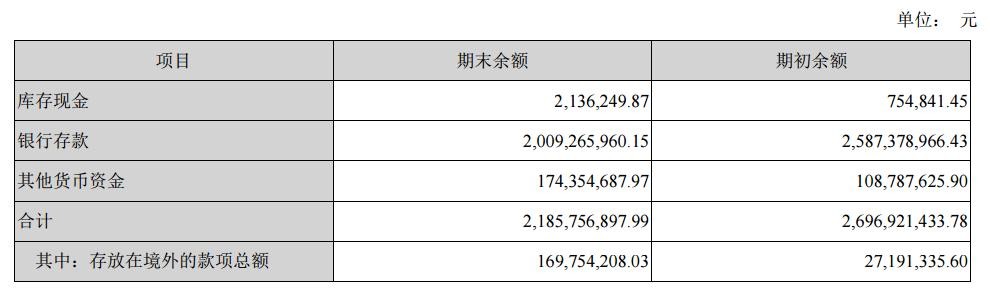 货币资金: 21.14亿