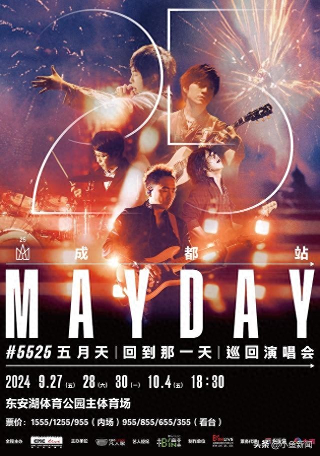 9月9日,五月天25周年巡回演唱会成都站官宣。