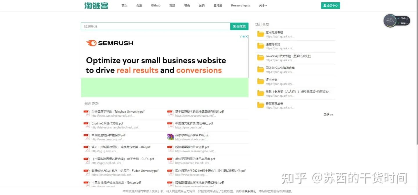 淘链客是一个主要收集文档类资源下载链接的聚合型搜索引擎网站,高校教科书资源丰富,搜索古籍非常方便,论文数量也特别多,很适合大学生用来下载资料