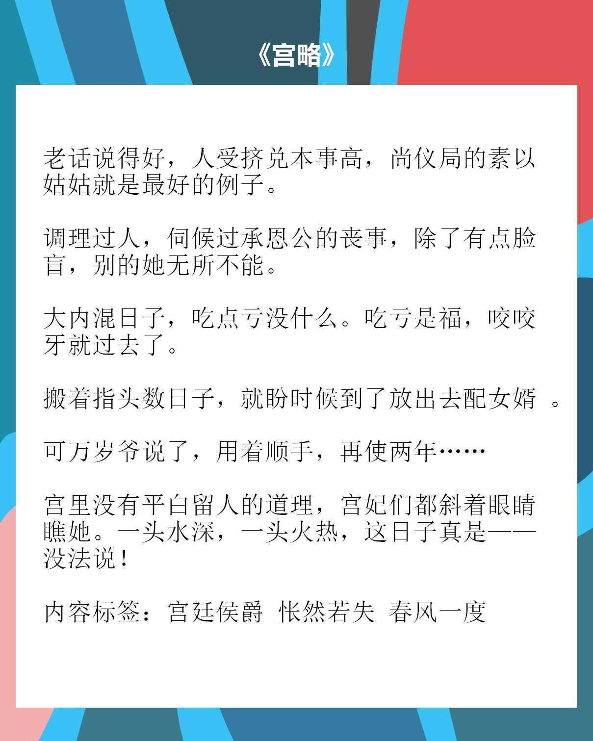 架空清清宫系列,权倾朝野东厂提督和被殉葬的小宫妃,男主顶替双胞胎兄弟进宫,女主一进宫就被殉葬,被男主救下后发生的一系列的故事。比较温柔的文笔,4星推荐。
