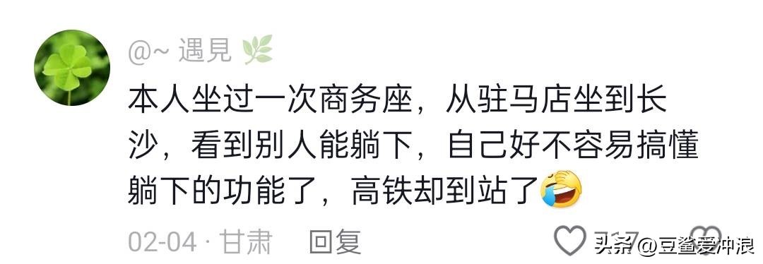 评论区分享了自己乘坐高铁商务座的经历 网友:简直无法直视
