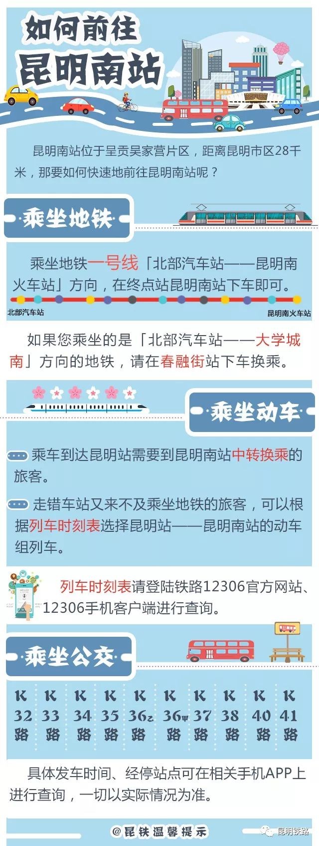 小伙伴们订票时,务必注意车站名称,车站名为“昆明”的,请到位于主城区的昆明站乘车。