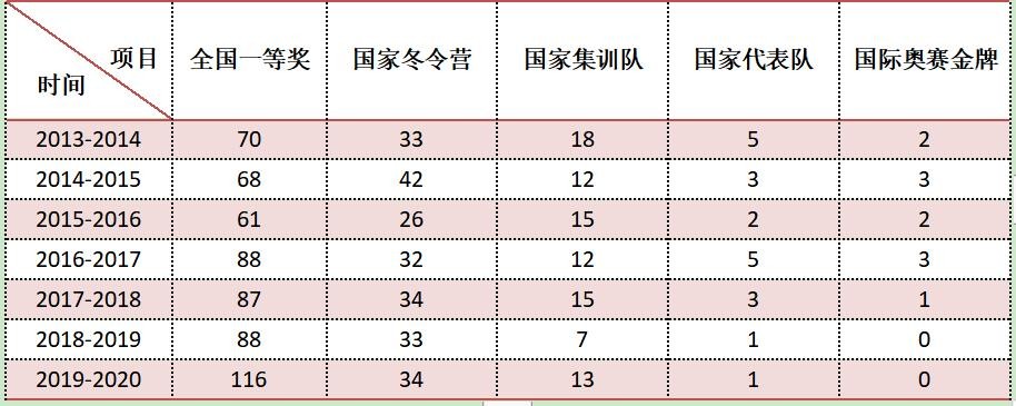 注:截止至2019年9月,我校国际奥赛金牌总数共计31枚,位列全国第一。