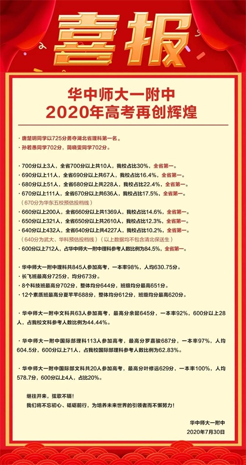 另外,在2020全国高中100强中,华师一附中也是位居全国第1。
