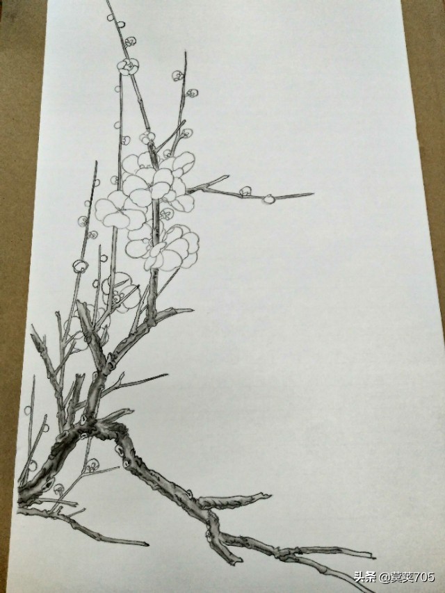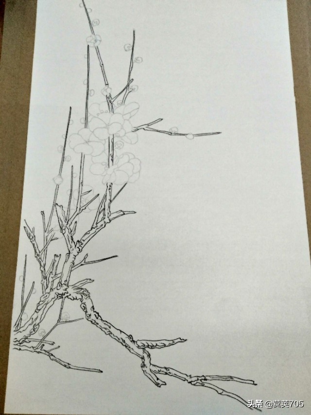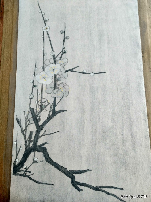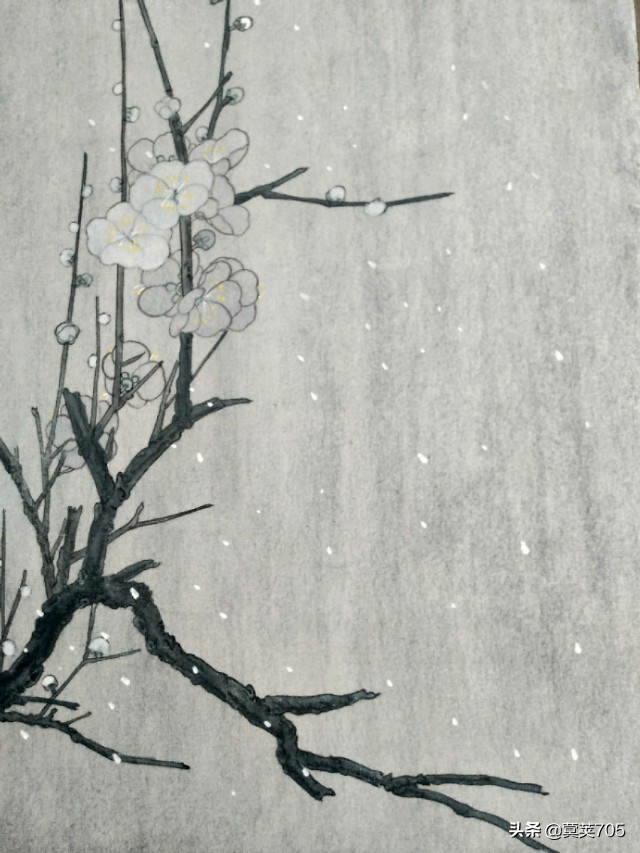 梅花是枝干比较粗糙,要注意画出它的质感。