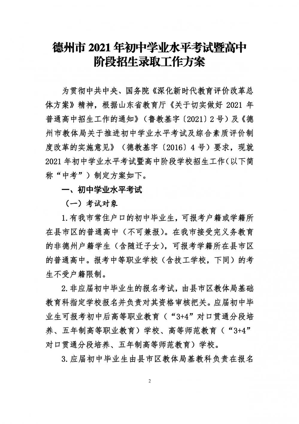 今年中考什么时候考?怎么考?高中阶段学校如何招生?近日,德州市教体局发布了关于印发《德州市2021年初中学业水平考试暨高中阶段学校招生录取工作方案》的通知。全文如下: