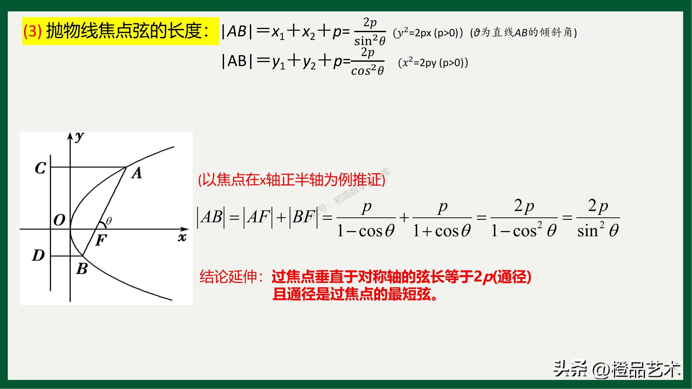 高中数学——抛物线中焦点弦10条性质、结论汇编