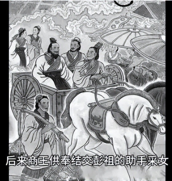后来商王供奉彭祖的助手采女,与采女一同驱车前往,得以见到彭祖。彭祖便将一千七百条长寿秘诀授予了商王。