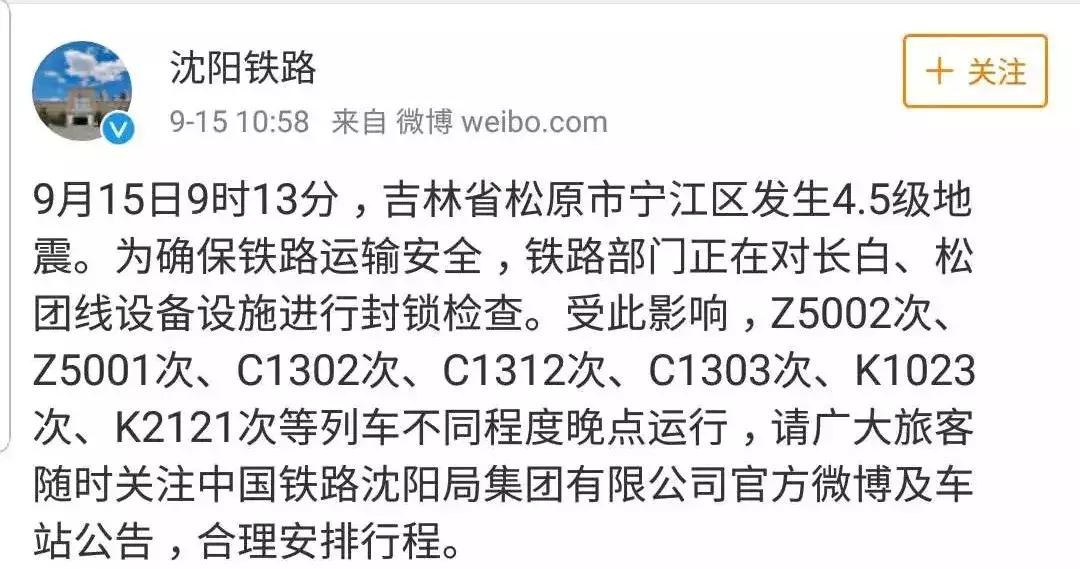 多地市民上街避险,长白高铁晚点运行,松原地震暂无人员伤亡报告