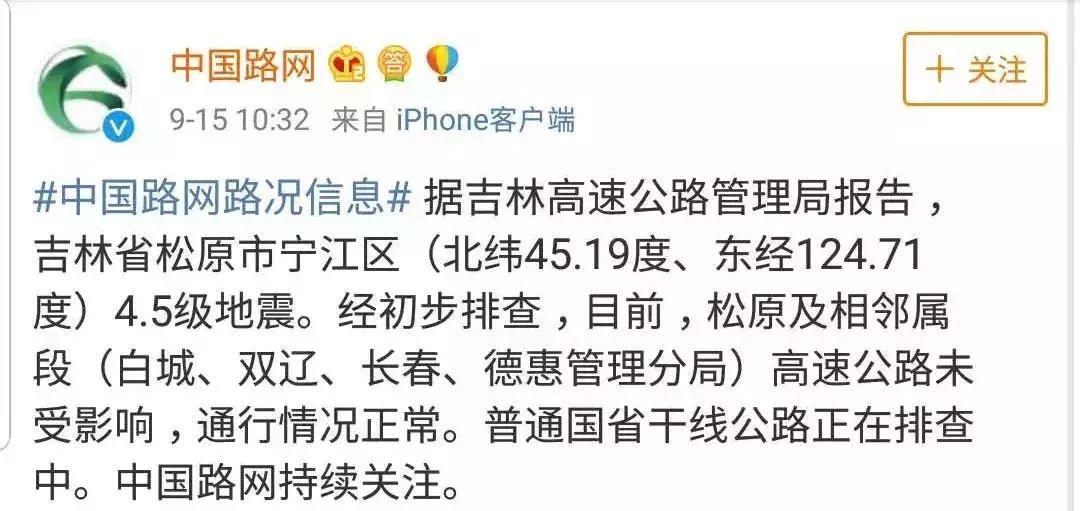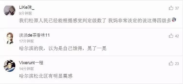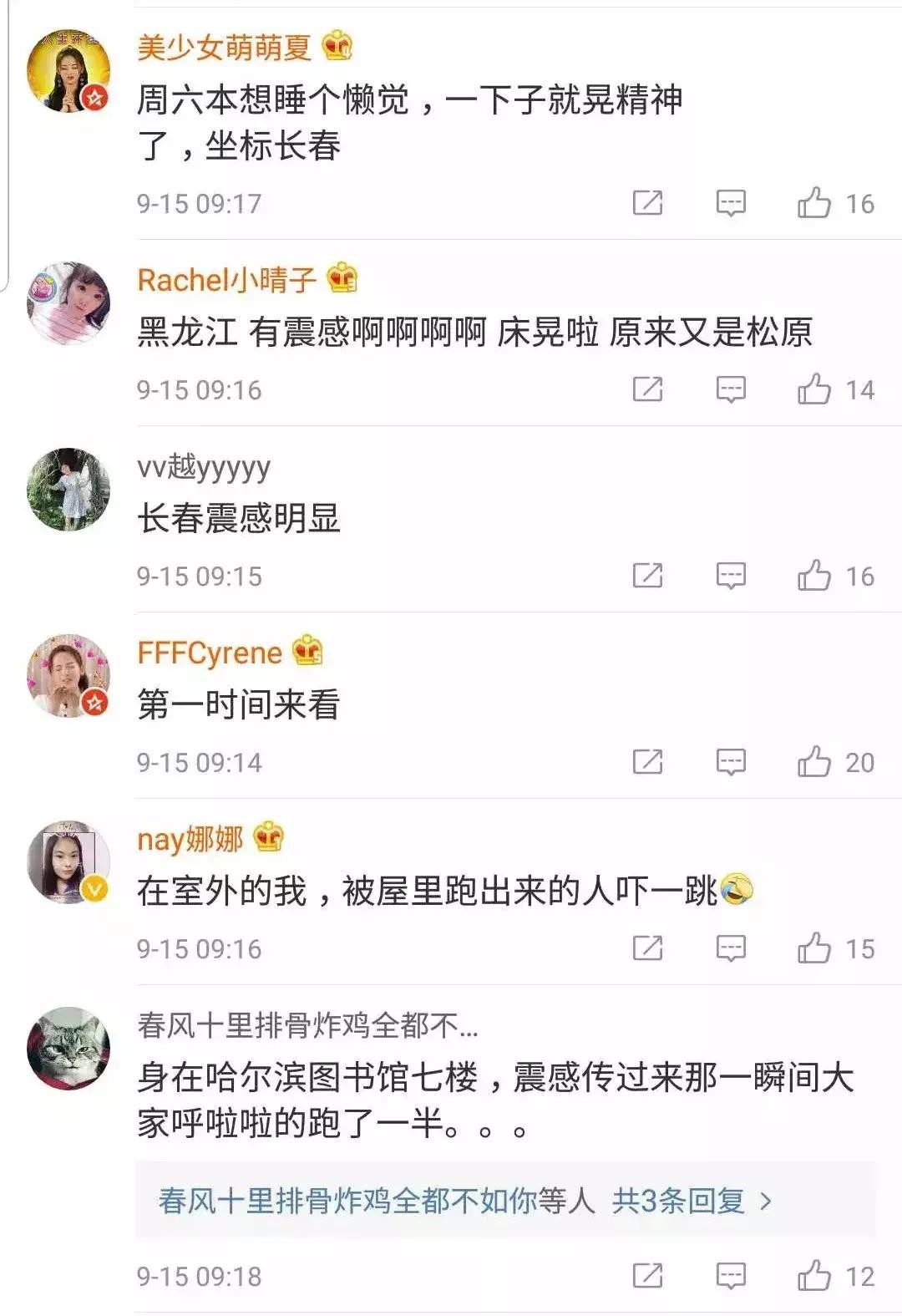 根据微博网友反映,今天松原4.5级地震,长春、吉林、白城、哈尔滨、大庆、通辽等地有明显震感。
