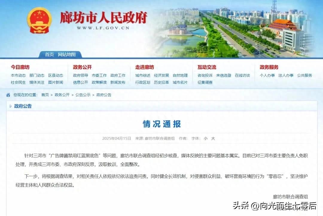 #纪委调查三河禁用红蓝黑招牌事件##人民网:三河强换招牌需给公众交代##河北三河最新公告来了#